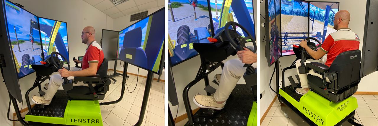 Il simulatore, progettato a misura d'uomo, offre una simulazione altamente realistica, riproducendo fedelmente i movimenti e le sensazioni tipiche della guida in campo. Gli allievi avranno l'opportunità di praticare diverse situazioni di guida in modo sicuro ed efficace, grazie ad un ambiente controllato e privo di rischi.