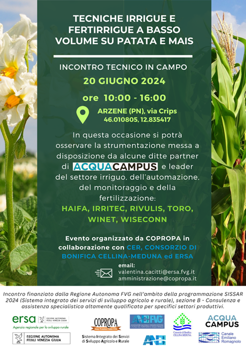 L’evento consentirà di osservare in campo le numerose soluzioni legate all’utilizzo efficiente della risorsa idrica nella coltivazione di patata e mais.