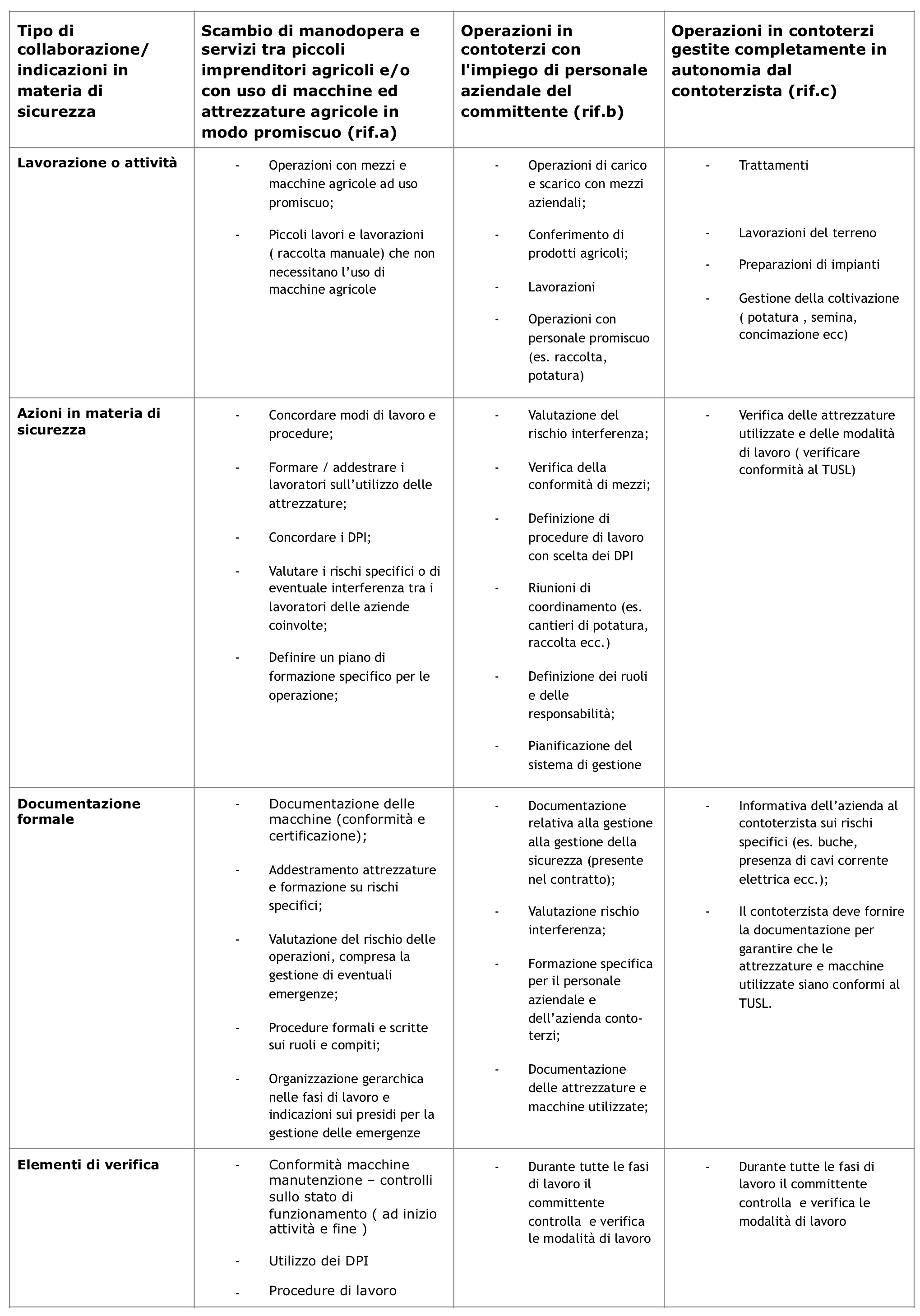 Pertanto, la sicurezza sul lavoro deve essere gestita da tutte le aziende agricole e dai soggetti che effettuano lavorazioni in modo congiunto o che terzializzano fasi di lavoro.